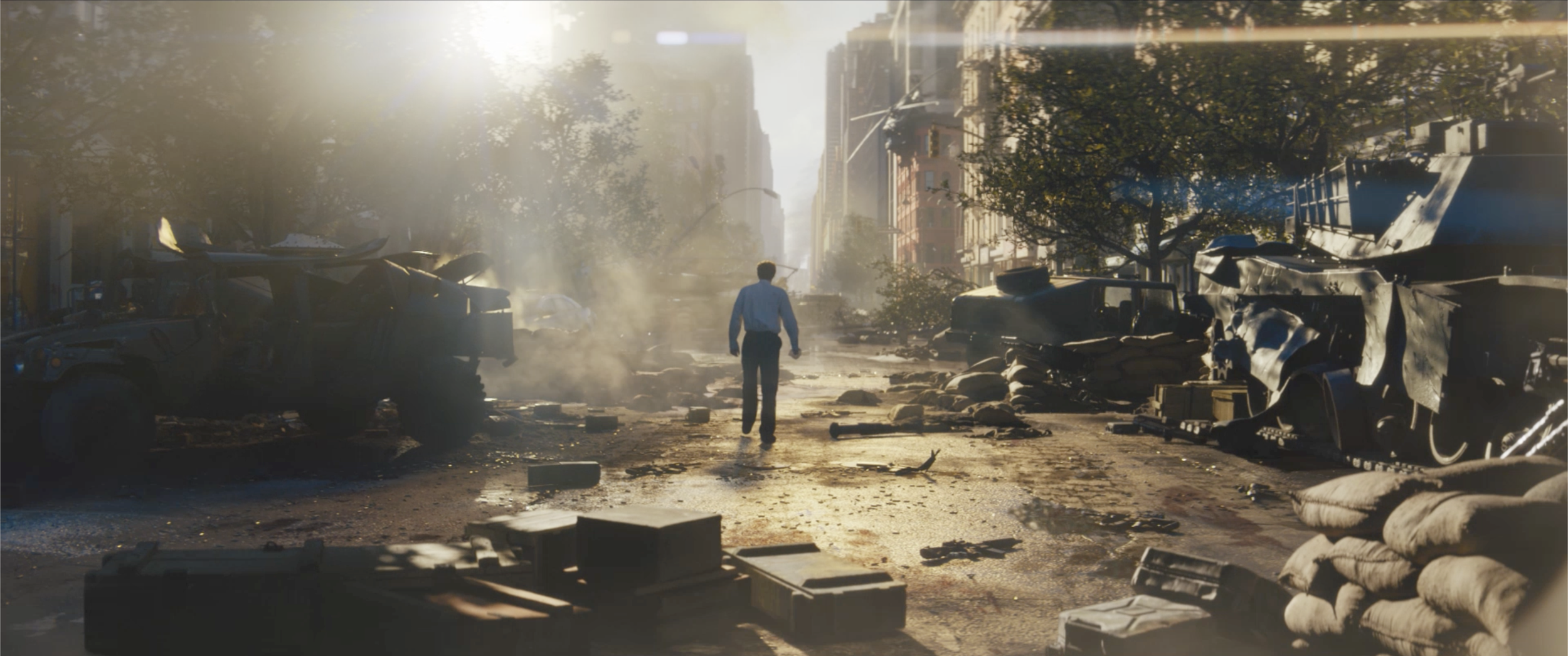 "Production designer Simon Bowles takes full advantage of the opportunities afforded by New York. Places we automatically associate with care and comfort like a hospital become potential death traps as noise brings the aliens crashing through glass walls and skylights. A cathedral serves as a place of reprieve, despite a massive hole formed by a creature smashing through its tiled floor and another one ripped out of its frescoed dome.” - The Hollywood Reporter